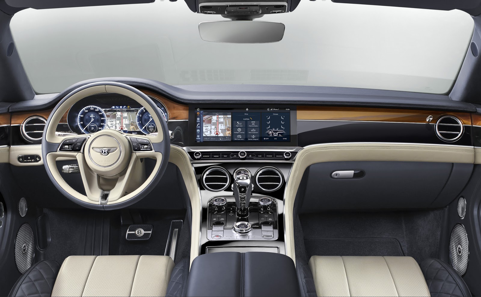 Υπάρχει επίσης για πρώτη φορά σε Bentley ένας πλήρως ψηφιακός πίνακας οργάνων μπροστά από τον οδηγό, αλλά και μια εκπληκτικής ευκρίνειας οθόνη τύπου «Retina» 12,3 ιντσών για το σύστημα πολυμέσων, η οποία περιστρέφεται μέσα στο ταμπλό.